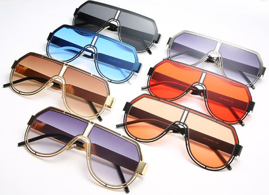 Personalized One Piece Large Frame Sunglasses Trendy Punk Metal Wind Sunglasses