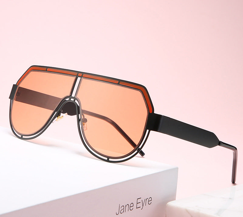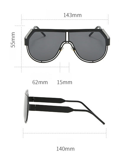 Personalized One Piece Large Frame Sunglasses Trendy Punk Metal Wind Sunglasses