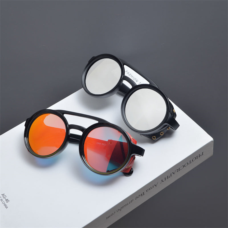 Steampunk round large frame sunglasses men and women hip-hop bouncy futuristic sunglasses driving cycling glasses
